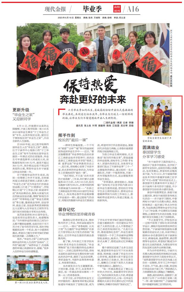 现代金报:圆满结业 泰国留学生分享学习感受