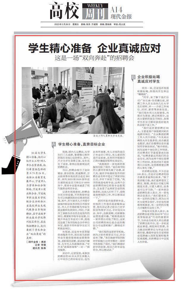 现代金报:学生精心准备 企业真诚应对 这是一场“双向奔赴”的招聘会