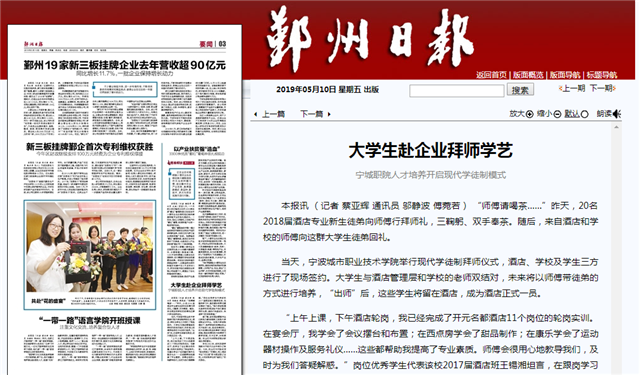《鄞州日报》、《杭州新闻》、《宁波晚报》客户端:大学生赴企业拜师学艺 宁城职院人才培养开启现代学徒制模式