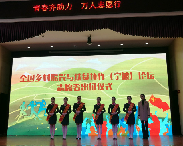 3月4日下午,我校飞鸿礼仪队志愿者代表亮相由鄞州区委宣传部、团区委、区民政局等主办的鄞州区志愿服务助力“七大行动”暨“3·5学雷锋”志愿服务活动现场,接受2019年全国乡村振兴与扶贫协作(宁波)论坛志