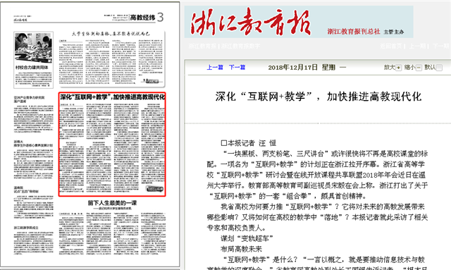 《浙江教育报》:深化“互联网+教学”,加快推进高教现代化
