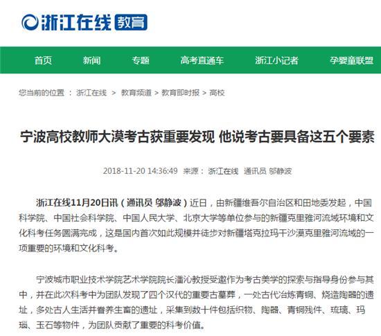 《浙江在线》:宁波高校教师大漠考古 他说考古要具备这五个要素