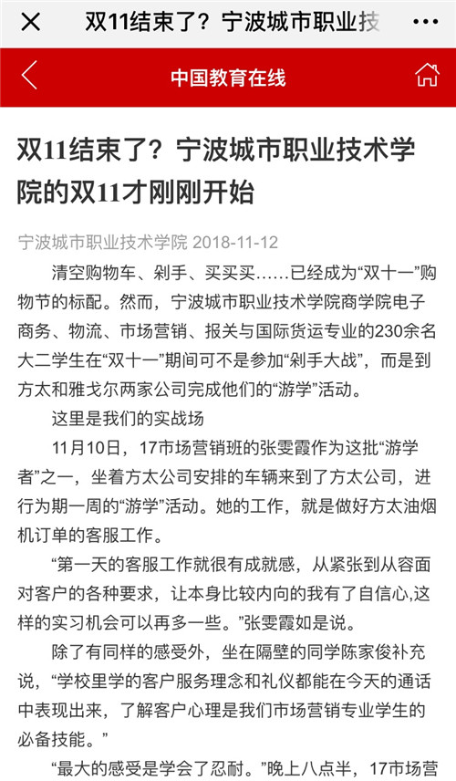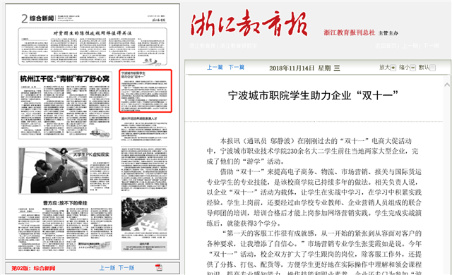 《浙江教育报》:宁波城市职院学生助力企业“双十一”
