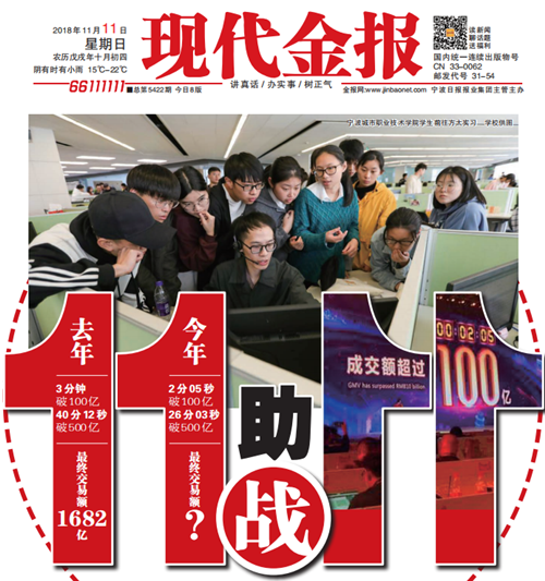 图为我校学生在方太实习 11月11日的零点钟声刚过去2分05秒,2018天猫“双11”成交额已突破100亿元人民币。 “双11”前夕,商家们全力以赴、蓄势待发,备战即将到来