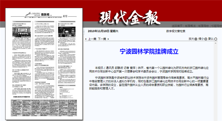 《现代金报》、《宁晚融媒》:宁波园林学院挂牌成立