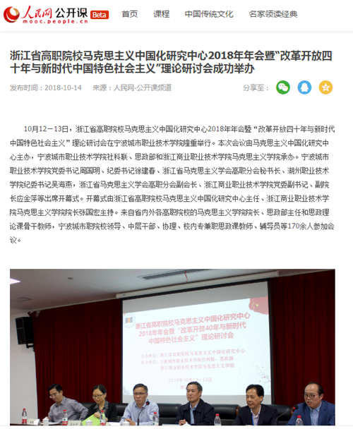 《人民网》、《宁波市教育局》:浙江省高职院校马克思主义中国化研究中心2018年年会暨“改革开放四十年与新时代中国特色社会主义”理论研讨会成功举办