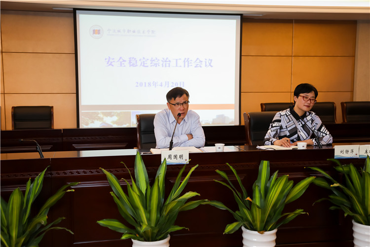4月20日下午,学校召开2018年安全稳定综治工作会议。党委周国明书记对2017年的工作做了总结,并部署2018年工作。全体校领导、中层干部、协理岗位人员参加了会议。会议由