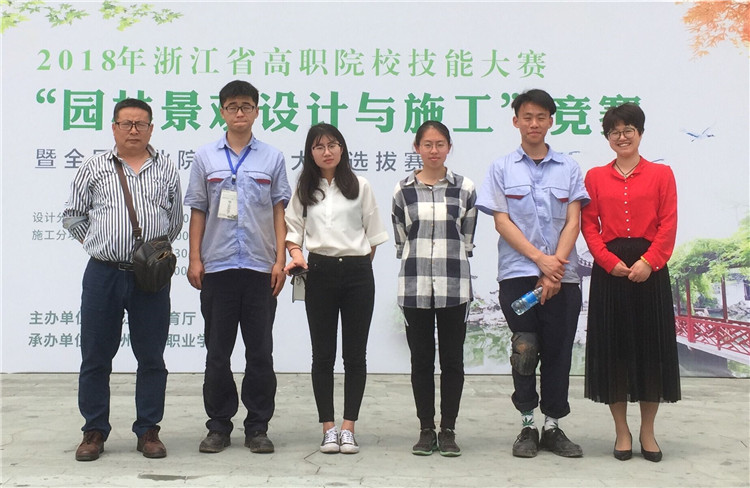 4月22日至23日,2018年浙江省高职院校技能大赛“园林景观设计与施工”竞赛暨全国职业院校技能大赛选拔赛在温州科技职业学院举行。我校参赛团队由崔广元指导的施工选手张文滔、程家俊和张立均指导的设计