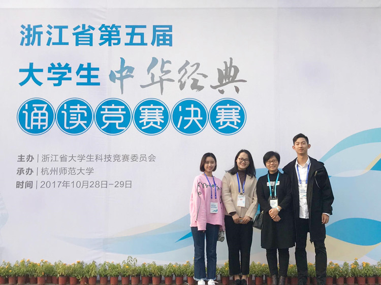 10月29日,浙江省第五届大学生中华经典诵读竞赛在杭州师范大学仓前校区完满地落下了帷幕,我校六名学子在思政基础部陈洁老师的带队下参加了本次竞赛,并取得了优异的成绩。其中,财金学院的李月雯同学勇夺大