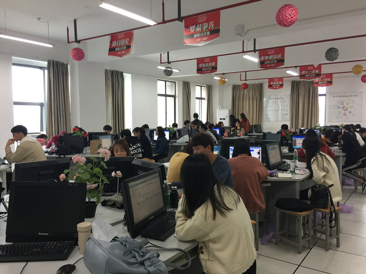 11月10日深夜,我校实训大楼里的电子商务模拟实训室依然灯火通明,此刻,这里既是课堂,也是天猫“双十一”活动的战场。同学们人手一台电脑,紧张的忙碌着。他们可不是在集体血拼,而是化身为淘宝客服,严阵