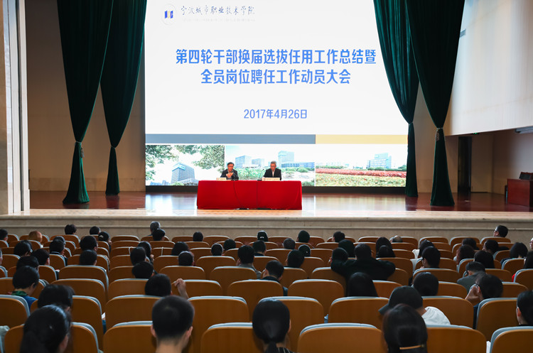4月26日,第四轮干部换届选拔任用工作总结暨第四轮全员岗位聘任工作动员大会在学校大礼堂召开。学校领导班子成员,全体教职工参加会议。会议由校长史习明主持。 会上,党委书记周国明对第四轮干部换届选