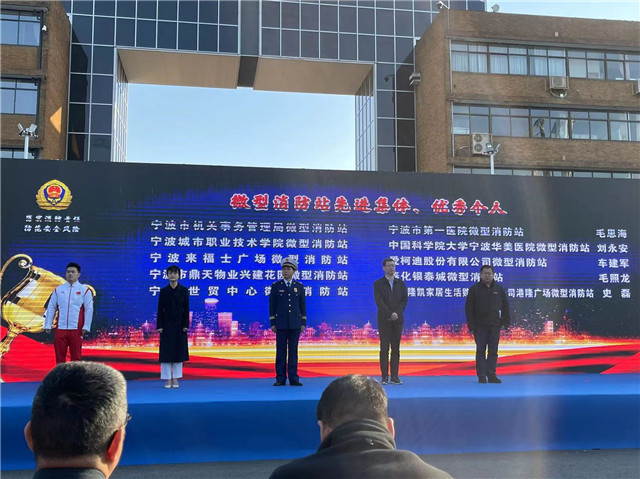 在2021年“落实消防责任、防范安全风险”119消防宣传月启动仪式上,我校获评2021年宁波市微型消防站先进集体。近期,我校2021年的消防宣传月紧锣密鼓地进行着,通过紧急救护培训、灭火器材使用、演练