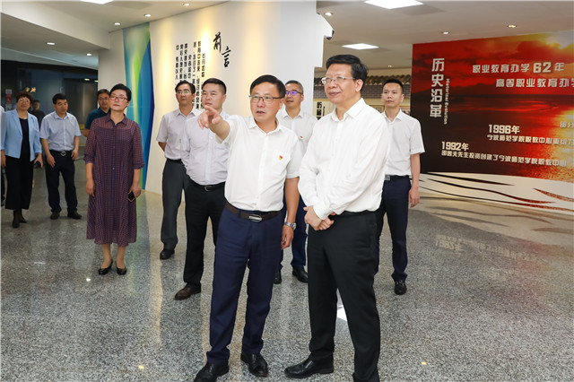 10月14日下午,省教育厅党委书记、厅长陈根芳一行来校考察调研。宁波市教育局党委书记、局长毛才盛,省教育厅办公室主任王洪光,省教育厅职成教处处长陈达,省教育厅教师工作处处长陈钦林,全体校领导等陪同调研