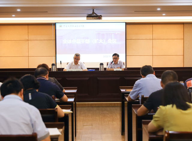 8月30日,我校召开全体中层干部(扩大)会议,会议由院长史习明主持,党委书记周国明作重要讲话。全体中层以上干部和协理岗位人员参加会议。会上,党委书记周国明对暑期筹备全员聘任、绩效考核、招生、就业、校园