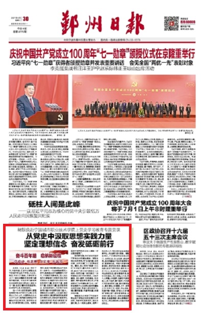 7月7日“周三夜学”日,校院两级理论学习中心组分别召开学习会,再次回看庆祝中国共产党成立100周年大会直播。党委理论学习中心组成员人手一份“习近平总书记在庆祝中国共产党成立100周年大会上的讲话”,边
