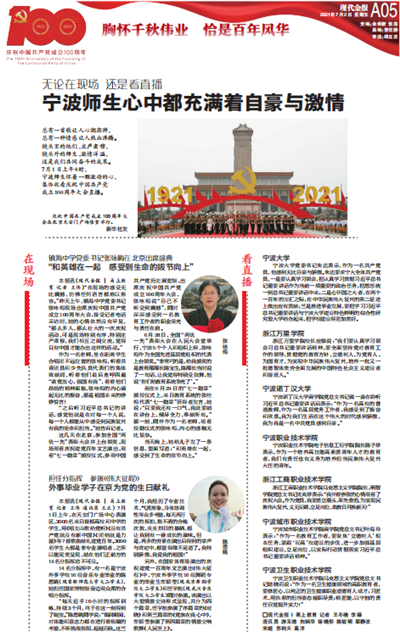 《现代金报》、宁波晚报《甬上》客户端:宁波各地高校师生观看庆祝中国共产党成立100周年大会