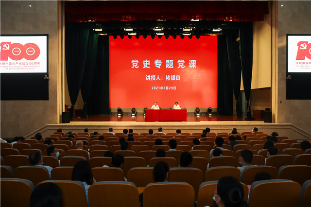 6月29日下午,宁波市委常委、鄞州区委书记褚银良来校讲党史专题党课,党委书记周国明主持会议。在一个半小时的党课中,褚银良围绕中国共产党为什么能、马克思主义为什么行、中国特色社会主义为什么好、高质量发展