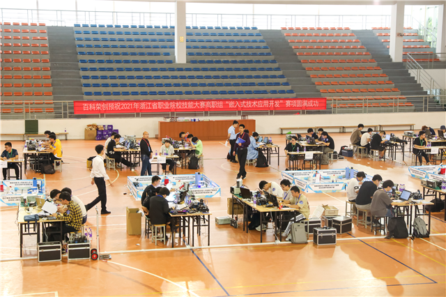 5月8日,由浙江省职业院校技能大赛组委会主办、我校承办的2021年浙江省高职院校职业技能大赛“嵌入式技术应用开发”赛项在学校体育馆举行。来自全省11所高职院校的21支代表队参加比赛。本赛项采用实操形式