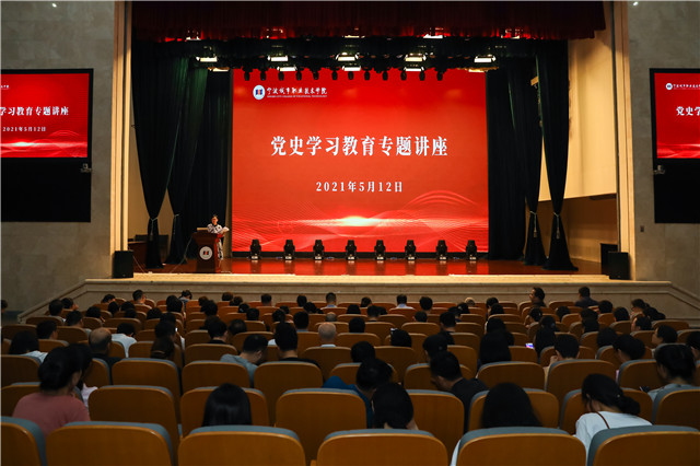 5月12日,学校邀请中国计量大学邓泽球教授来校作题为《红船启航百年路 中国进入新时代——从党的一大到十九大》的党史学习教育专题讲座。讲到“建党百年路”时,邓泽球以党的一大到十九大为主线,结