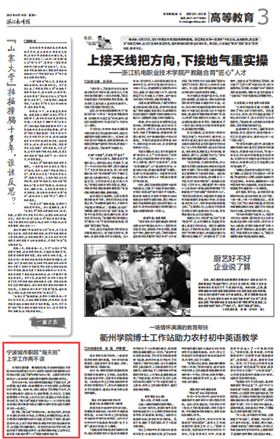《浙江教育报》:宁波城市职院“海天班”上学工作两不误