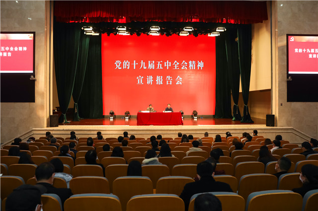 12月24日上午,宁波市委常委、鄞州区委书记褚银良来校宣讲党的十九届五中全会精神,党委书记周国明主持宣讲报告会。 褚银良紧紧围绕习近平总书记在党的十九届五中全会上的重要讲话精神和全会审议通过
