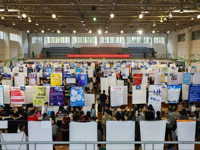 11月14日,浙江省2021届高校毕业生宁波专场招聘会暨宁波市就业创业服务月技能人才招聘会在我校举行。招聘会当天,我校及周边高校约4000余人次进场应聘,与此同时线上“空中招聘会”同步进行,访问人次达