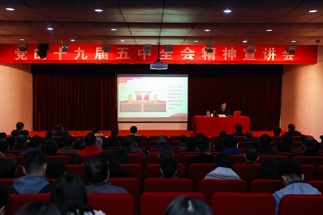 11月25日下午,学校党的十九届五中全会精神宣讲会暨党委理论学习中心组(扩大)学习会在六号楼报告厅举行。党委书记周国明作题为《描绘新蓝图 开启新征程》的宣讲。