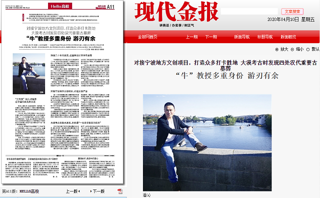 《现代金报》、宁波晚报《甬上》:“牛”教授多重身份 游刃有余 对接宁波地方文创项目,打造众多打卡胜地 大漠考古时发现四处汉代重要古墓葬