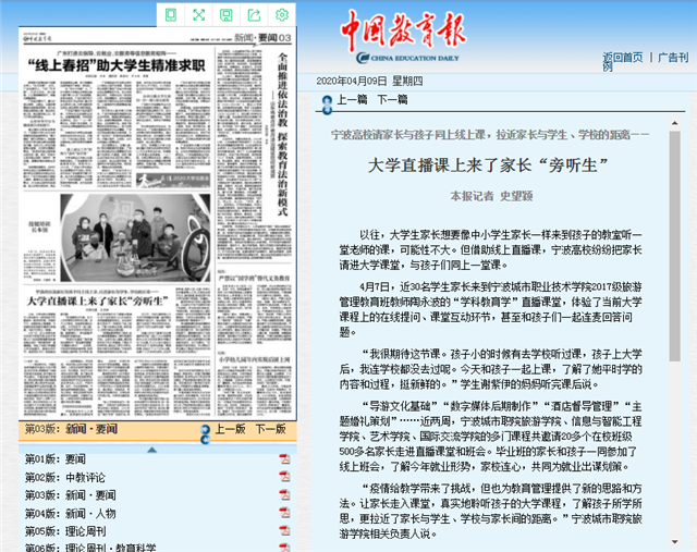 《中国教育报》、《人民日报》、《宁波日报》等6家媒体:“在线提问”、“连麦”问答……宁波这所大学学生家长和孩子同上直播课