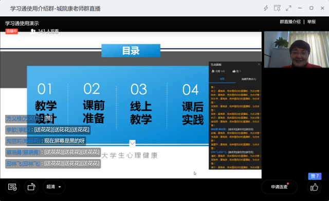 黄艾线上授课分享 1节直播课、38名学生、5312条点赞……与学生连麦交流,直播课堂气氛活跃