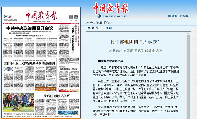 《中国教育报》头版、《中国教育新闻网》:村干部组团圆“大学梦”
