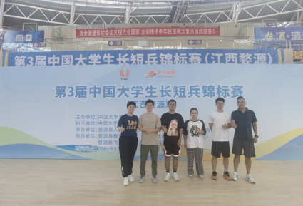 9月19日至9月23日,第三届中国大学生长短兵锦标赛在江西婺源体育中心举行,来自18个省、自治区、直辖市的42支大学生代表队参赛。经过激烈角逐,我校兵道队荣获1个第三名,2个第五名次的好成绩,对于这支首次参加此类比赛的队伍来说,这份成绩来之不易。