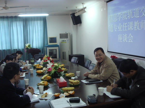 为及时掌握轨道交通“订单班”的班风和学风最新情况,把该班办成城市学院的“品牌班”和“特色班”,11月24日下午,信息学院召开轨道交通班任课教师及相关人员座谈会,该班的任课教师和班主任、专业负责人、教学秘书参加了会议,座谈会由信息学院赵黎明副院长主持。他首先代表学院对各位老师的辛勤劳动表示衷心的感谢,向老师们通报了轨道交通指挥部和学校方面关于“订单班”的最新动态,并向老师们说明了召开此次会议的目的。