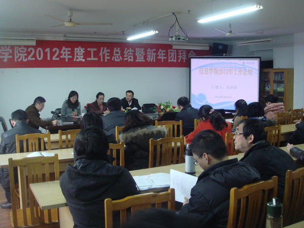 1月15日下午,信息学院2012年度工作总结会议在6-705召开。校长李太武、信息学院领导和全体教职工参加了本次总结会议。