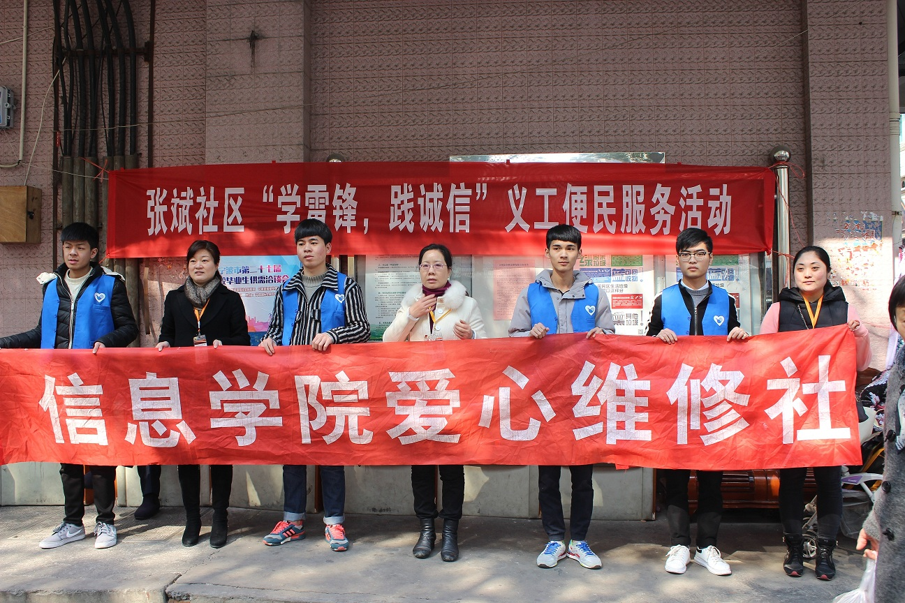 在“3.5学雷锋日”即将来临之际,信息学院爱心维修社的同学们前往张斌社区开展“学雷锋·践诚信”青年志愿者活动,义务为社区居民提供电脑维修和维护服务。