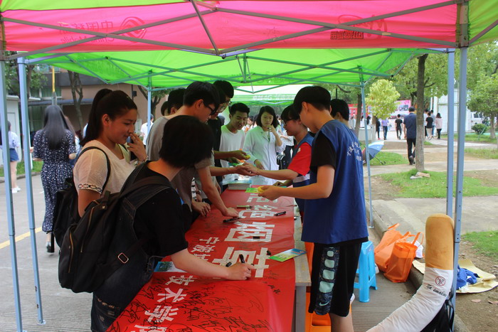 活动当天,信息学院“蓝马甲”志愿者在创业街悬挂起了以“拒绝烟草,远离危害”为内容的横幅,通过倡导过往师生签名活动呼吁大家禁烟,尤其在公共场所更要主动禁烟。此次活动通过悬挂横幅、签名、发放宣传册等形式,向我校师生宣传吸烟与二手烟对人类健康的严重危害,并为大家讲解戒烟对健康的益处、戒烟的方法和步骤等常识,号召广大师生要养成健康生活方式。