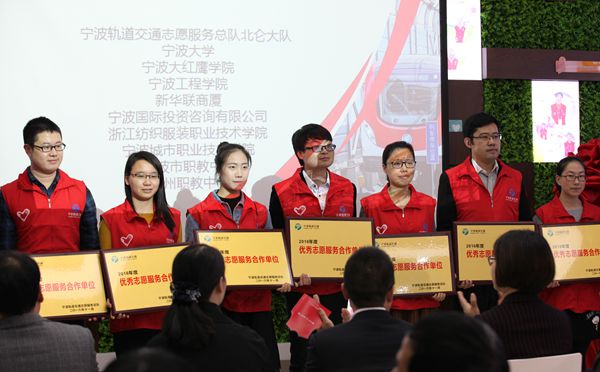 11月21日,为迎接12.5国际志愿者日的到来,宁波轨道交通集团在2号线鼓楼站举行了2016年宁波轨道交通志愿服务表彰大会与“人人志愿者行动”启动仪式暨宁波轨道交通志愿服务中心、宁波轨道交通志愿者之家启用仪式。我校应邀参加了本次活动。