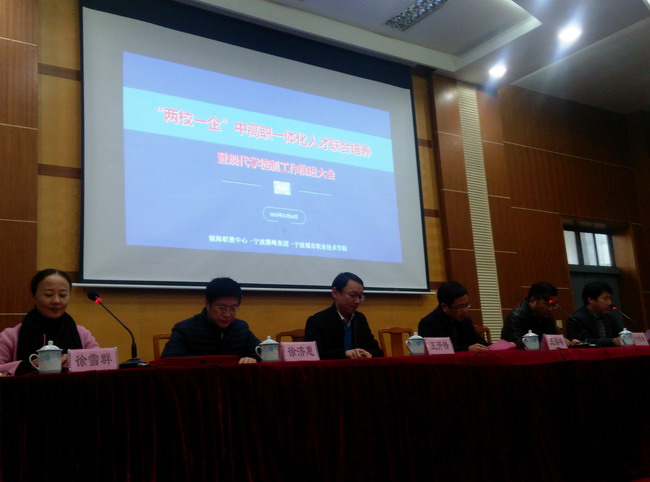 为创新人才培养模式,加强中高职衔接及校企合作,推进现代学徒制工作的深入开展,大力培养具有高学历与高职业素养的双高型人才,2016年12月14日,镇海职教中心、kaiyun开云官方在线入口和宁波腾峰集团,在镇海职教中心报告厅举行“两校一企”中高职一体化人才联合培养暨现代学徒制工作推进大会。我校信息学院院长徐济惠、信息学院副院长潘世华、教务处处长助理陈烽参加大会和座谈交流会。