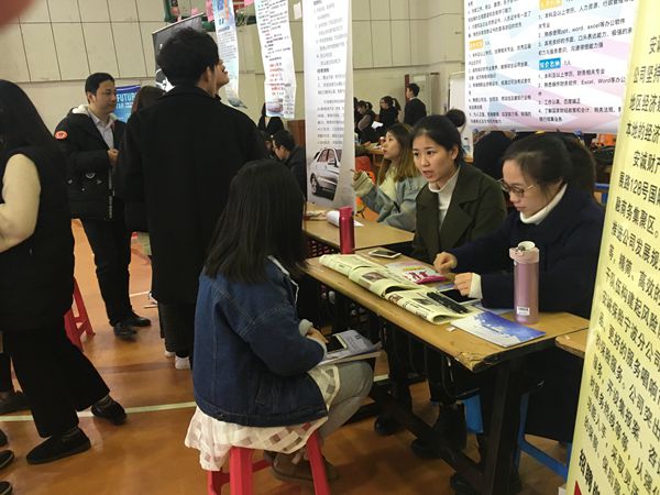 12月30日上午,由商贸学院和信息学院联合举办的“2016年宁波人才市场校园专场暨kaiyun开云官方在线入口商贸类、智能信息类专场招聘会”在学校室内篮球场举行。台塑关系企业、宁波神筹环保设备有限公司、上汽大众汽车有限公司宁波分公司等近140家企业参加本次招聘会,提供将近500个工作岗位,为用人单位与毕业生提供了“双向选择”的机会。招聘会一开始,现场就人头攒动,在场学生驻足咨询、积极交流,向企业投递求职材料,并积极努力的展示自己、推销自己,面对前来咨询的同学,企业负责人也都耐心地一一作出讲解。据了解,不少毕业生在招聘双选会现场便与用人单位达成了初步的意向。除应届毕业生之外,招聘会现场还出现了学院部分大一、大二学生的身影,他们想通过观摩与交流,感受招聘现场的气氛,掌握相关就业信息,为今后自己的就业打下坚实基础。