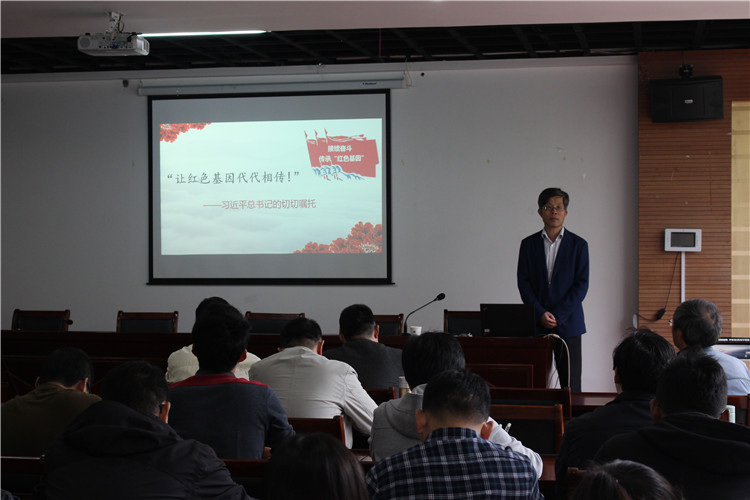 4月25日中午,党委委员、副院长严新乔给信息与智能工程学院全体师生党员讲授题为《传承红色基因 做一名合格的党员》的专题党课,学院党总支书记江乐平主持。