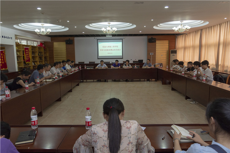 6月12日下午,信息学院召开学科与技能竞赛总结交流会,学校领导潘菊素、教务处领导、信息学院全体领导班子,以及2018年各赛项指导老师和参赛学生团队代表参加了本次会议。