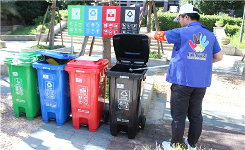 期间,团队成员除了在生活区垃圾亭排班进行垃圾分类督导,引导学生正确分类投放外,还在6号宿舍楼试点开展上门回收垃圾的志愿活动,并对回收垃圾进行集中分类处理。据统计,“绿园公益”小分队自10月10日进行上门回收垃圾,目前为止累计回收垃圾12000余件,其中外卖垃圾6000余件,分类整理出可回收垃圾8000余件。