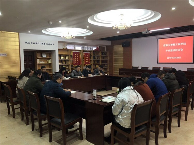为谋划专业的发展, 2月23日上午,信息与智能工程学院召开学期初专业建设研讨会,副院长严新乔, 教务处处长赵黎明、质管办主任王明霞、学院全体班子成员及专业主任参加了会议。