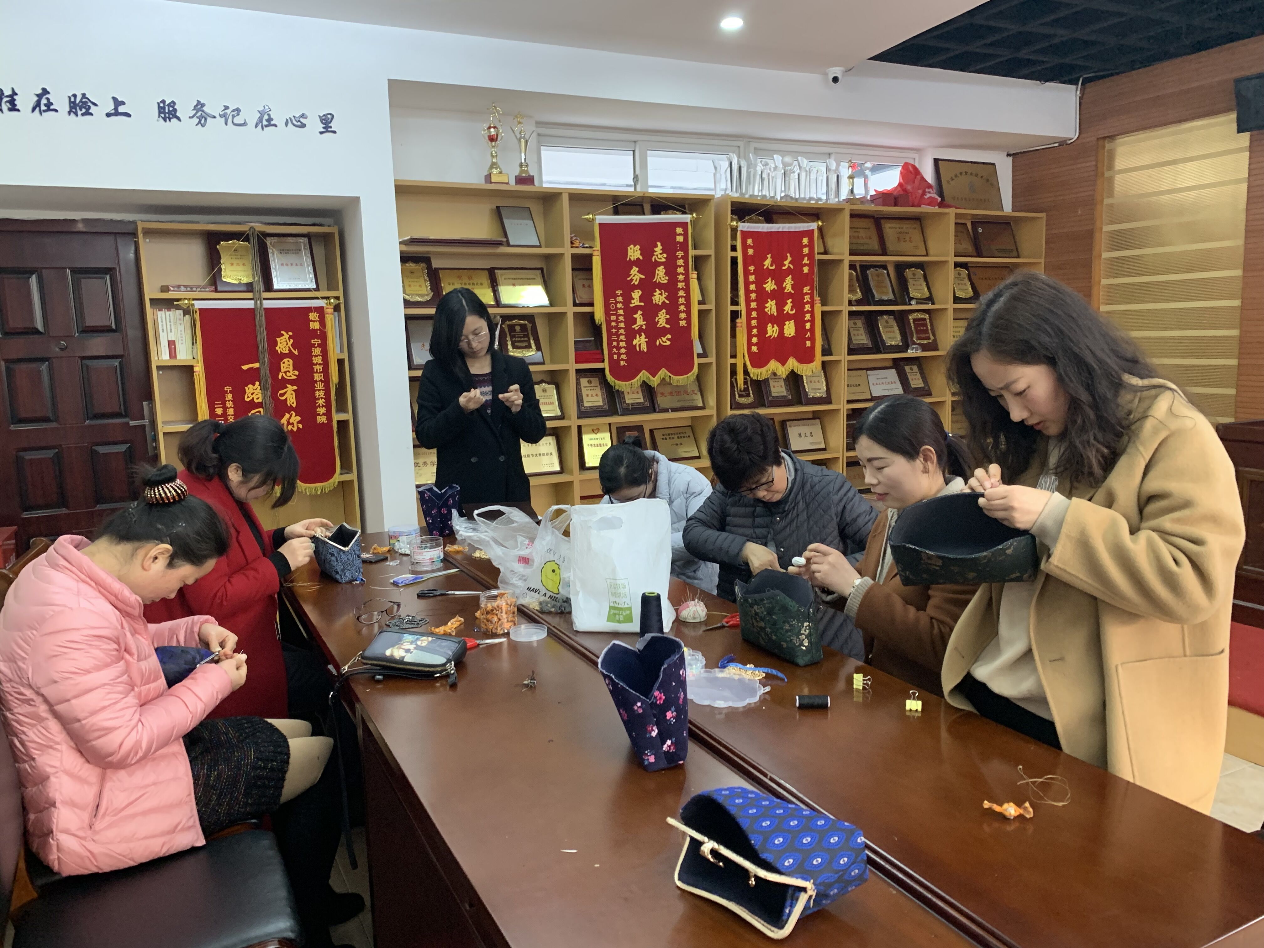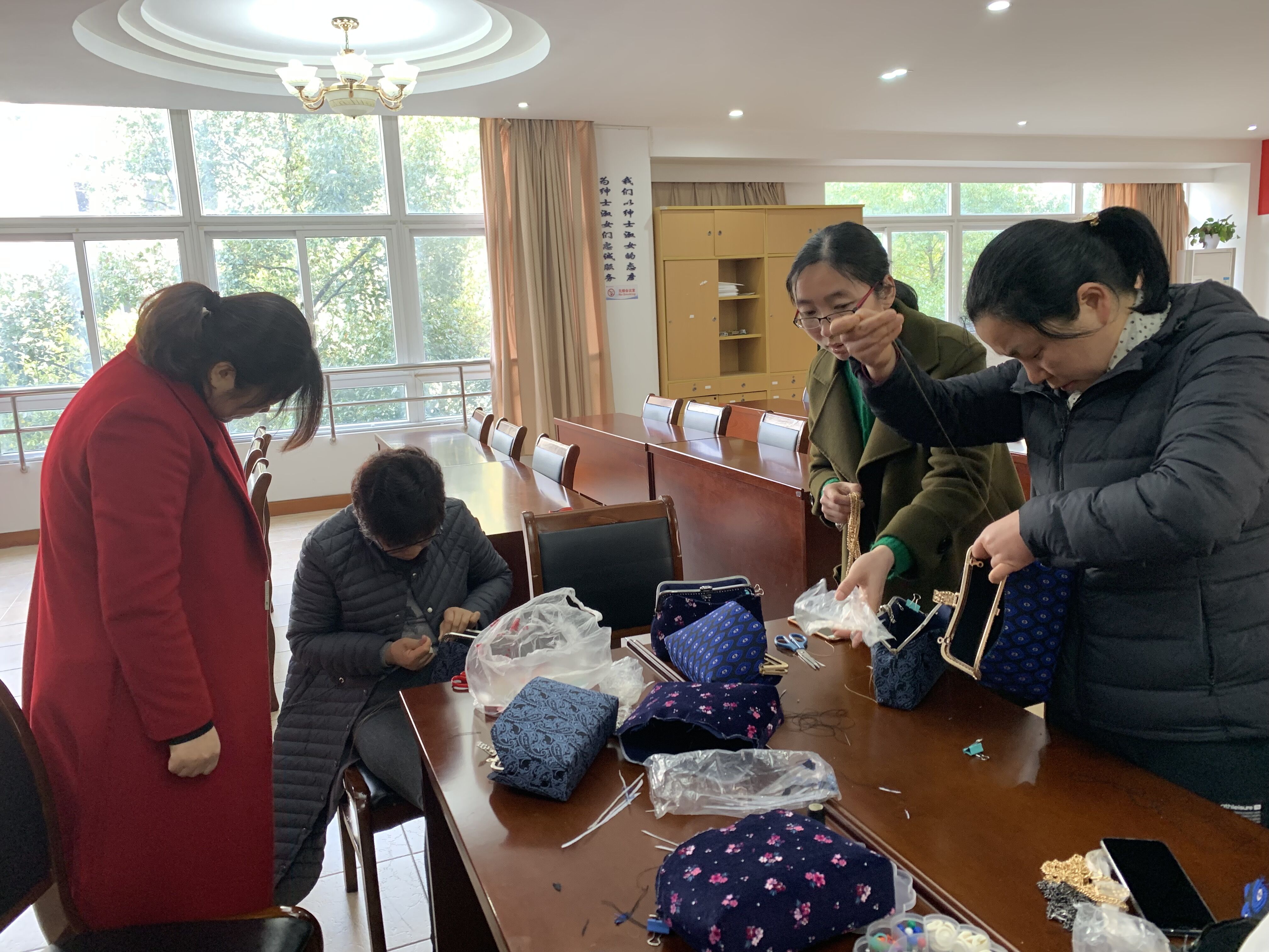 3月13日下午信息与智能工程学院分工会庆祝“三八”节,在学院会议室举行手包制作活动。