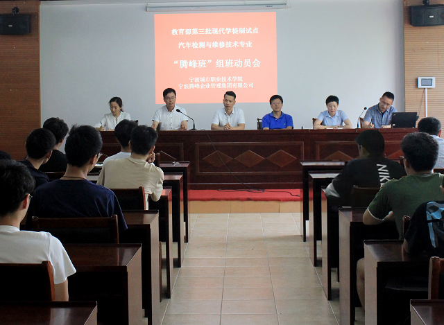 6月27日,信息与智能工程学院召开教育部第三批现代学徒制汽车检测与维修专业“腾峰班”组班动员会。学院全体领导、合作企业宁波腾峰企业管理集团有限公司副总裁及人事行政总监、汽车专业全体教师、18级汽车检修B班全体同学参加动员会。