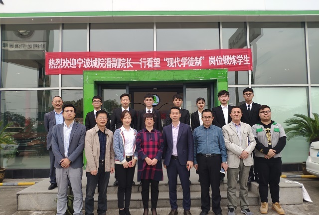 10月22日下午,副院长潘菊素、教务处相关领导、信息与智能工程学院部分班子成员及汽车专业相关教师一行,赴宁波腾峰企业管理集团有限公司看望我校参与教育部第三批“现代学徒制”试点项目汽车检测与维修技术专业“腾峰班”岗位锻炼的学生,与腾峰集团相关领导及企业导师召开了交流座谈会,向新增的企业导师颁发聘书。