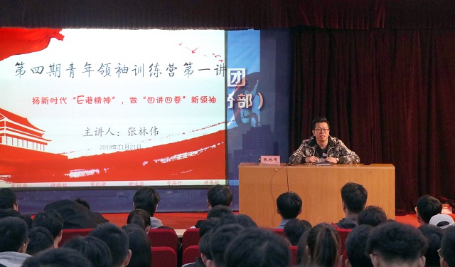 伴随着高亢激昂的国歌声,第四期青年领袖训练营正式启动。到场的127名学生干部面向团旗庄严宣誓,重温学生干部誓词,不忘服务初心。在简短而又隆重的开班仪式后,院团总支书记张林伟以《扬新时代“E港精神”,做“四讲四要”新领袖》为题,作为第四期青年领袖训练营的第一讲。张林伟对院三大组织全体学生干部提出“讲政治、讲纪律、讲作风、讲礼貌”的工作要求和“要主动、要作为、要规范、要及时”的工作态度,希望他们能肩负新时代青年领袖的重要使命,争做新时代奋进者、奉献者,做合格的社会主义建设者和可靠接班人。