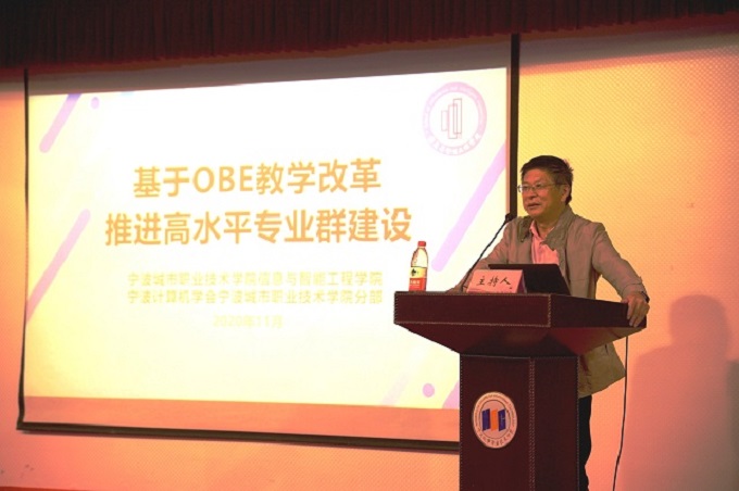 为推进高水平专业群建设,信息与智能工程学院与2020年11月9日下午举办“基于OBE教学改革推进高水平专业群” 专题报告会,邀请宁波大学信息科学与工程学院教授、中国计算机学会宁波分部副主席、宁波市计算机学会副理事会长王晓东老师做“产出导向的课程教学”主题报告,全体师生参加了报告会。王教授在报告中介绍了他在基于OBE教学方面的经验,提出了“产出导向教与学”的课程教学改革,并结合《计算机网络》课程多维度介绍了“学生中心”、“持续改进”、“产出导向”在课程中的实践。