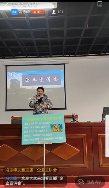 学院特邀宁波荃意科技有限公司的蒋工主讲,分享了求职经历和创业历程,以亲身经历鼓励同学们摆正就业心态、主动学习提升、积累工作经验,特别是初入职场时务必要谦虚好学,不怕苦累,为更好更远的职涯发展和规划奠定坚实基础。就创业指导讲座结束后,学院同时启动了线上专场招聘会。学院积极搭建优质的校企合作平台,联合宁波软件协会优选了三十家企业进行网上招聘,并开展了盈凯电子、芯速联光电、画芯电子、威源软件等四家企业的招聘宣讲,面向应电和网络专业毕业生现场+直播双线进行。