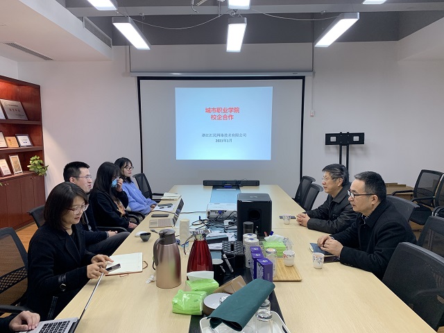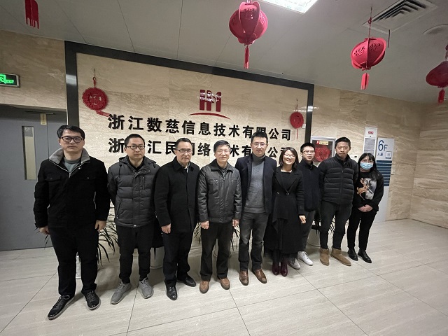 为推进产教融合、服务企业工作,2021年1月15日,在院长徐济惠带领下,信息与智能工程学院一行再次访问了浙江汇民网络技术有限公司,公司总经理张曦明带领公司技术人员一起参加了研讨会。